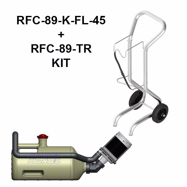 COUPLER 45° ANGLED C/W BOTTLE & TROLLEY Krontec RFC-89-K-FL-45 Dual Fill Coupling complete with 25L bottle on 45 degree angle with all hoses and clamps ready to "Plug & Play" and INCLUDING specialised trolley! PLEASE NOTE we can also offer you the Extended handles "XT" and Endurance Lock mechanism "LM" options to fit this bottle! You may also be interested in Part# RFC-89-K-FL-0 for the coupler and straight bottle connection complete assembly ready to Plug & Play OR RFC-89-K Dual fill Head assembly only with 2 x 38mm Hose Tails, which is generally used on the end of Fuel Rigs for connection to car "nipple" for Pit Stops. This product is the latest version of the Krontec RFC Refuelling system now with improved knowledge and an investment in state of the art technology, CFD and our expertise in integrated systems we have taken all of our customers feedback and have redesigned the system to incorporate the following improvements combining the best performance with reduced spillage, improving safety. * Reduced number of moving parts * Improved knowledge and capability in design and manufacture * Improved clearance and control to minimise spillage * Minimised number of joints * Lower friction on all moving parts due to a new high resistant and conductive layer * Increased flow rate by up to 10,7% due to streamlined design and CFD simulation * The weight of the fuel valve has been reduced by 30% * The 2nd Generation RFC-89 is entirely interchangeable with the original RFC-88, allowing existing customers to upgrade easily! Krontec bottle trolley to fit all RFC-89 25 Litre refuelling bottles, and it also accepts ALL ATL (UK) refuelling bottles as well!