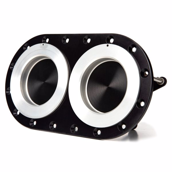 Dual PP20 Series Receiver, Tank Mount configuration. Center distance between receivers 100mm. Designed for 3/16" flathead attachment fasteners.