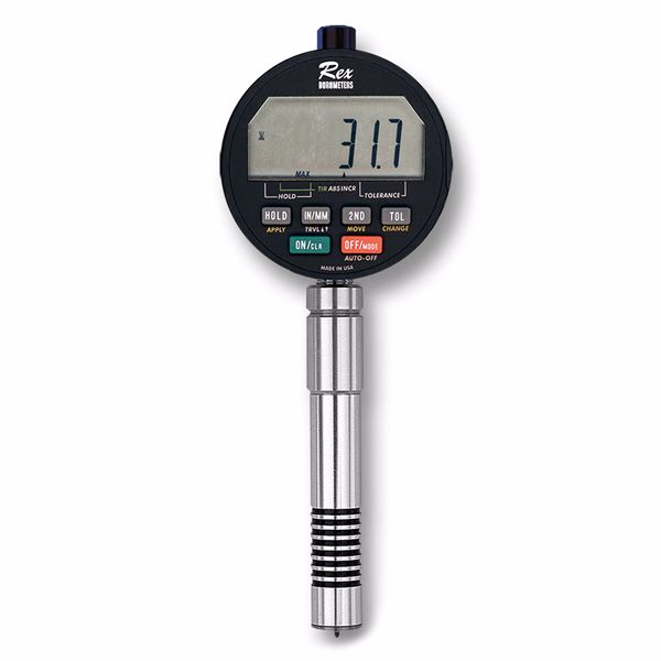 The Rex DD-4 Digital Durometer is the successor to the popular Rex DD-3. With its impressive list of features, the DD-4 is truly state-of-the-art, and is the ideal instrument for lab use. Some of the new features are: a new, larger direct drive LCD display, USB data ports for computer compatibility, a locking feature to prevent accidental erasure of tolerances, automatic shutoff.