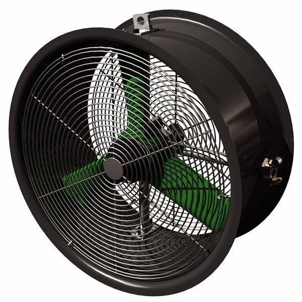 Two hanging points are provided so that the fan can easily be mounted with chain or straps from a roof. The air inlet is a standard Type A snap coupling style.